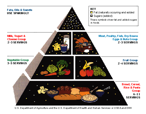 OLD FOOD PYRAMID conceived by the U.S. Department of Agriculture was intended to convey the message "Fat is bad" and its corollary "Carbs are good." These sweeping statements are now being questioned. Not all fats are bad for you, and by no means are all complex carbohydrates good for you. The USDA's Center for Nutrition Policy and Promotion is now reassessing the pyramid. This effort is yet to be completed sometime this year. Since the pyramid was released by the U.S. Department of Agriculture in 1992, nutrition scientists have criticized the content and design and proposed numerous alternatives, including the Healthy Eating Pyramid, California Cuisine Food Pyramid, Mediterranean Diet Pyramid and Soul Food Pyramid. Some experts think the USDA pyramid desperately needs this reassessment. "You can think of the pyramid as a dowdy old lady who never got a new wardrobe," says Alice Lichtenstein, a professor of nutrition at Tufts University in Boston. "She hasn't been updated on the basis of new scientific evidence and new dietary recommendations." "It's severely out of date," says Walter Willett, chairman of the department of nutrition at Harvard School of Public Health. He says the pyramid doesn't reflect the latest research on nutrition and weight control, and it may be contributing to obesity and health problems in this country. Judi Adams, president of the Wheat Foods Council, an industry group that promotes eating grains, agrees that it needs some "tweaking," including emphasizing whole grains more. The government pyramid, created as a tool to teach the U.S. Dietary Guidelines, took on many shapes before it was released. Officials tested images of a plate, a bowl and a shopping cart before choosing the pyramid. "We are looking to make sure the recommendations are consistent with the most recent science, and that it (the pyramid) is better interpreted by the public," says Steven Christensen, acting director of USDA's Center for Nutrition Policy and Promotion. The agency is taking a hard look at the design and messages. The USDA is also reviewing new nutrient recommendations from the National Academies' Institute of Medicine, which include advice on many things from dietary fiber to daily activity. "We are looking to see if the servings in the Food Guide Pyramid meet the new recommendations," says the agency's John Webster.